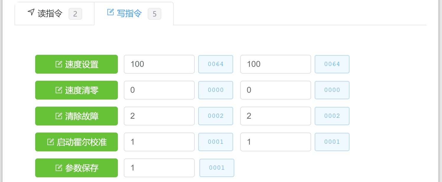 Motor模块提供了灵活的指令配置项,包括指令结构和命令主体,并以读指令和写指令对命令进行了划分。设置好的指令配置可以将其导出或载入。